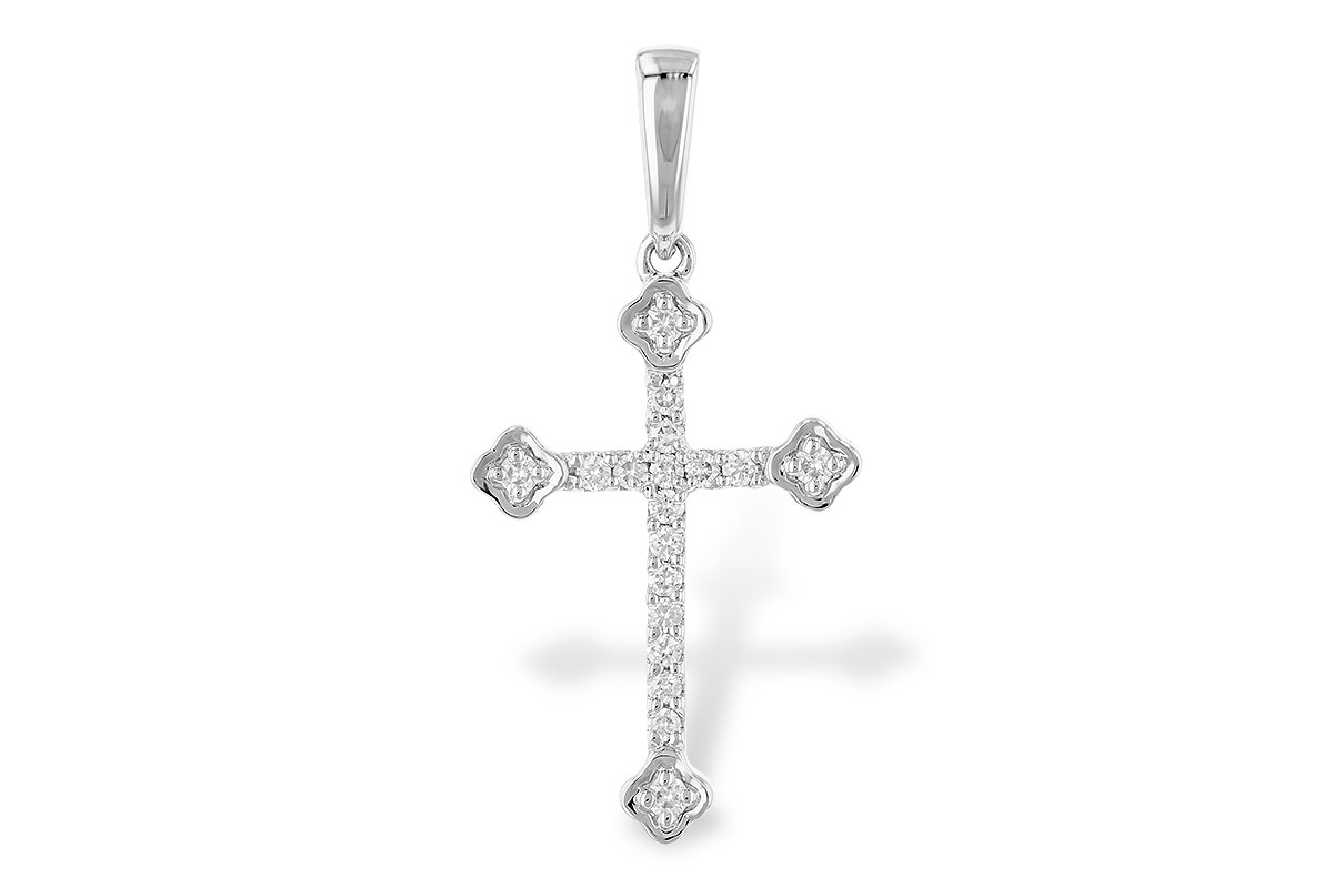 14k White Gold Cross Pendant, .12 TDW. Also available in Yellow Gold
