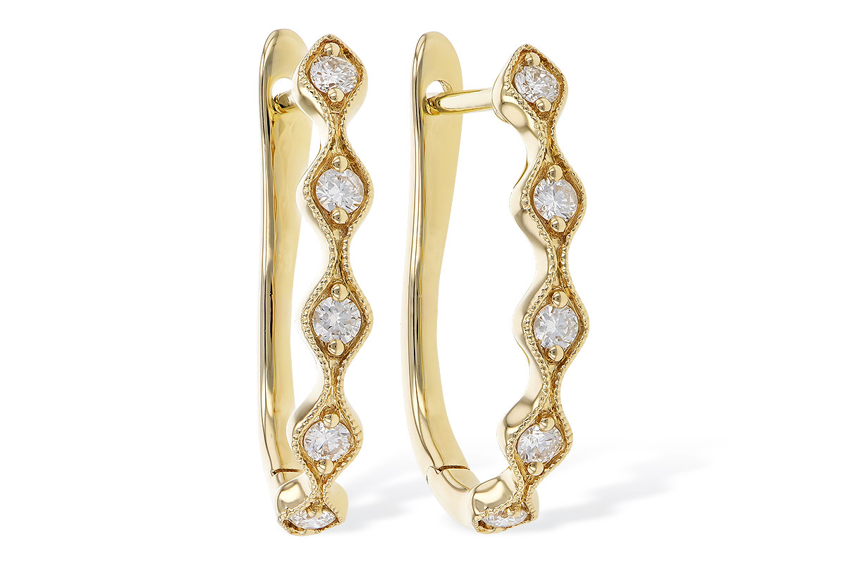 14ky Hoop Earrings, .25 TDW. Also available in white and rose gold
